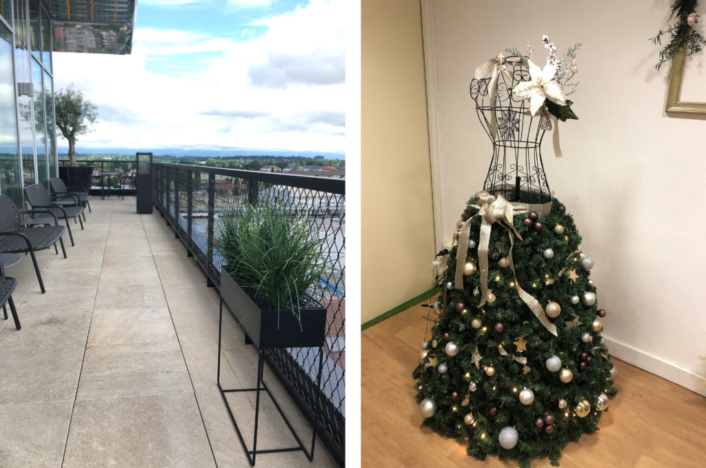 Nos fleuristes en atelier ont pu créer du végétal sous toutes ses formes : vertical, suspendu… et même l’habillage végétal d’un mannequin pour en faire une décoration pour Noël !