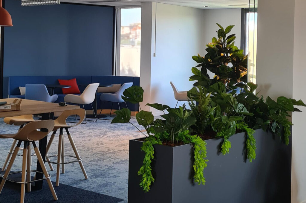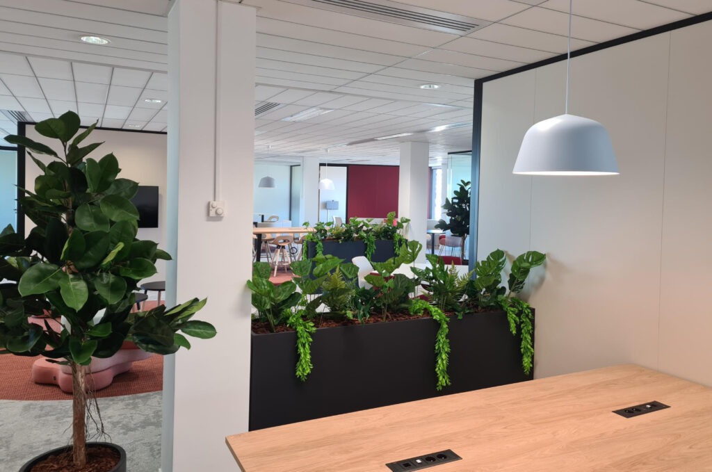 Nous avons végétalisé les espaces de travail des équipes d'Arkéa Banking Services, implantées dans le bâtiment le Bristol à Vincennes.