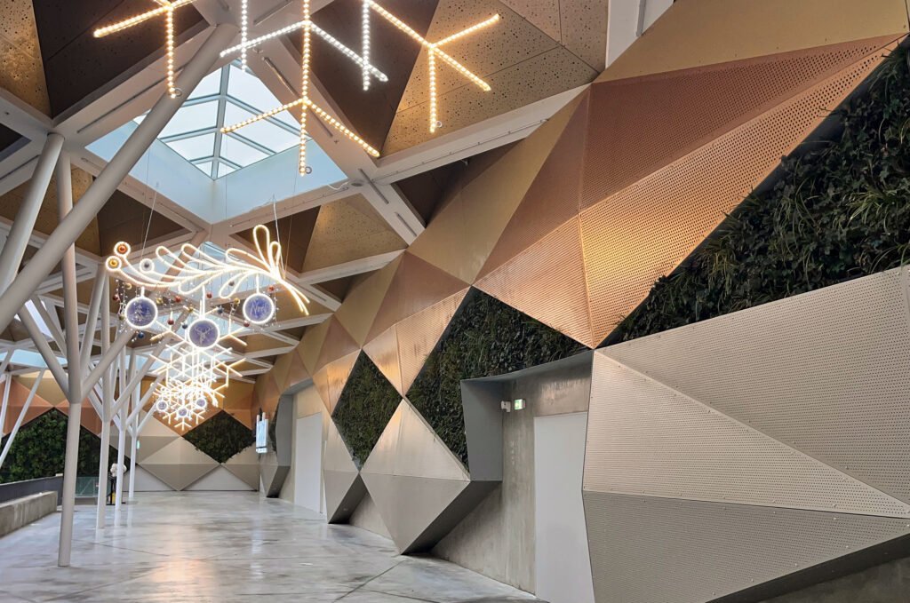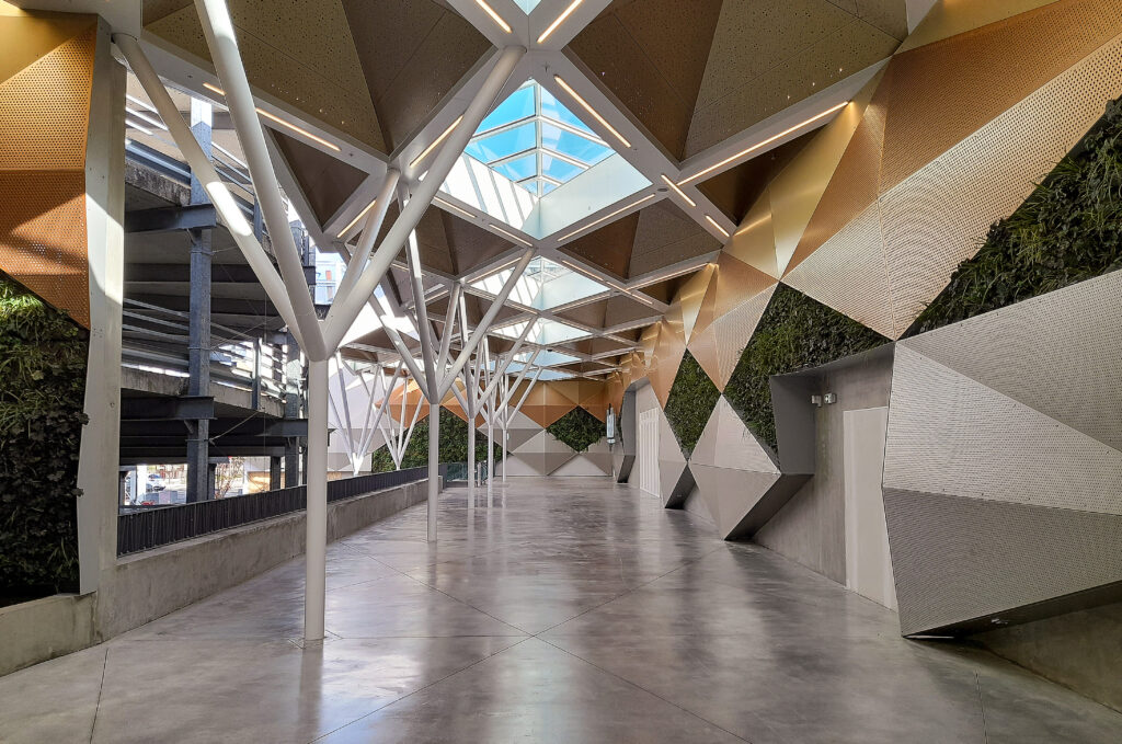 Nous avons également intégré un habillage végétal de la rampe du parking silo, visible depuis le nouveau parvis, avec des plantes grimpantes sur un maillage de câble en inox.