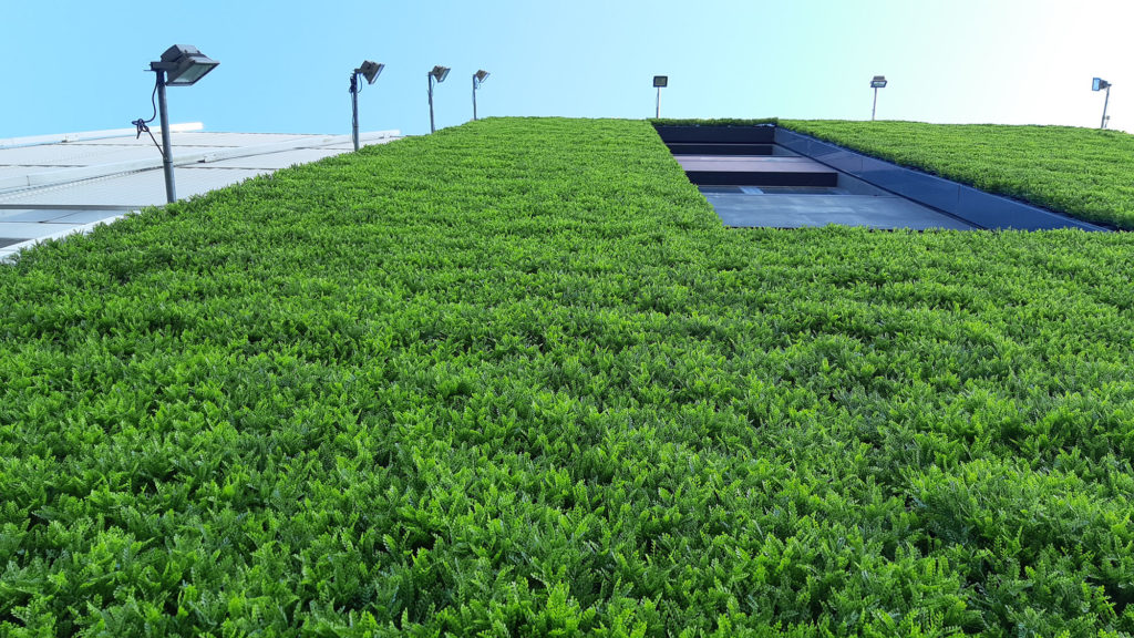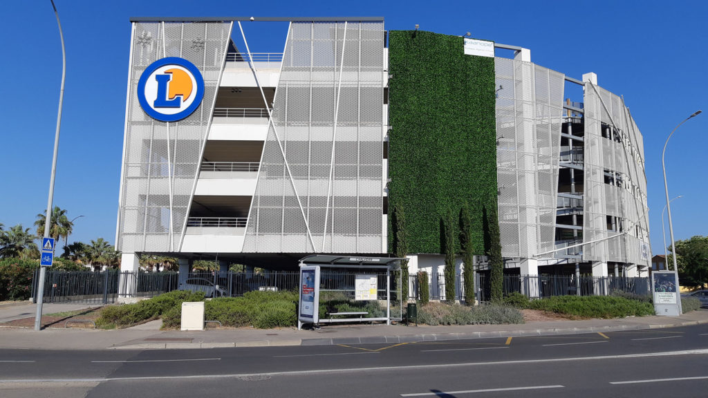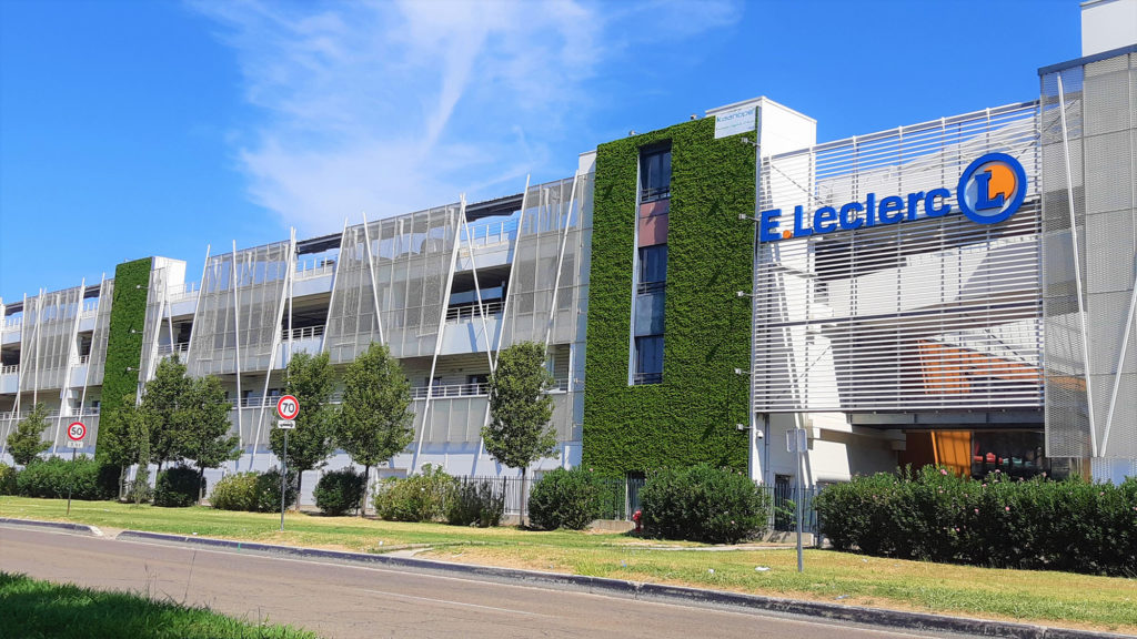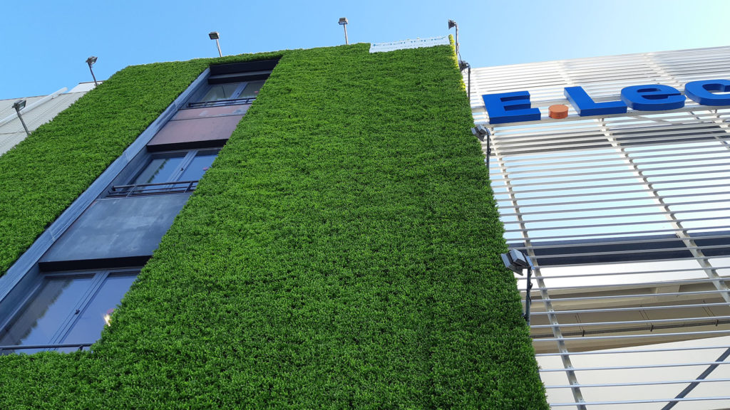 Nous avons installé des murs végétalisés extérieurs artificiels de 17 mètres de hauteur au E.Lerclerc de Nîmes.
