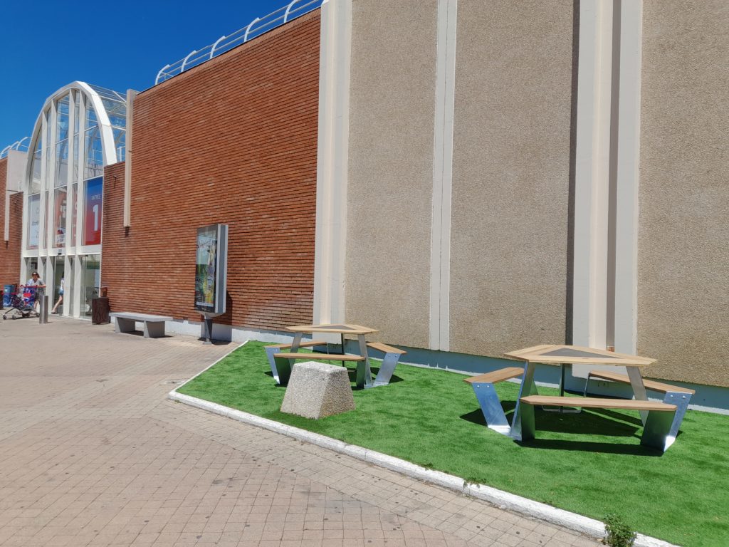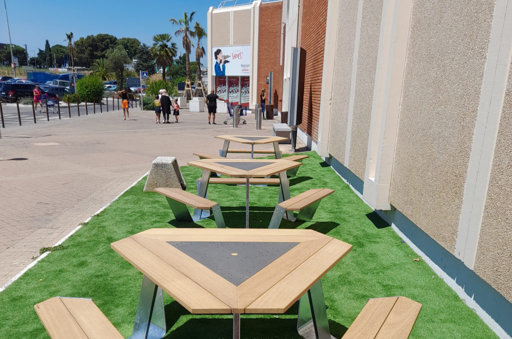 Création d'espaces pour pique-nique au Centre Commercial Grand Sud à Lattes, pour notre client Klepierre.
