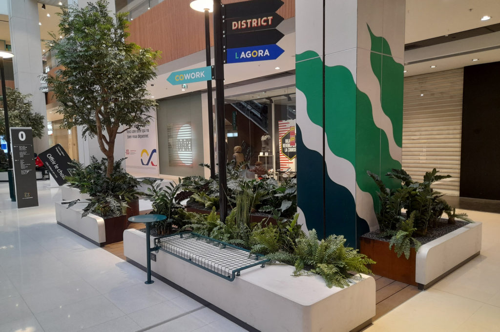 Nous avons végétalisé le tout nouveau parcours client du Centre Commercial Les Trois Fontaines à Cergy-Pontoise, pour son extension ayant ouvert le 30 mars 2022.