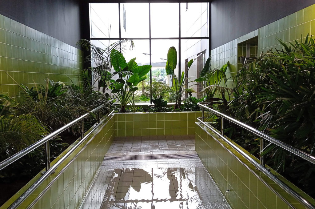 L'objectif de notre client était d'apporter une ambiance conviviale et tropicale/végétale autour des bassins.
