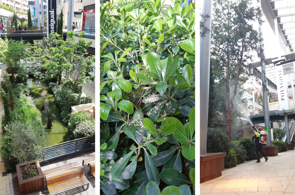 Ce contrat d’entretien multi-facettes est tourné vers la biodiversité et la lutte biologique qui fait partie intégrante des aménagements du centre commercial.