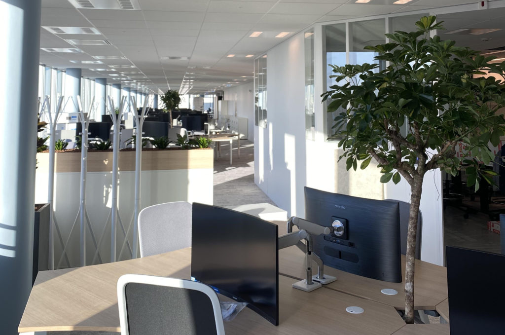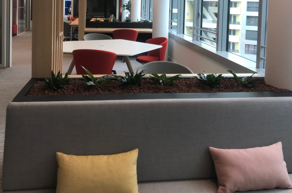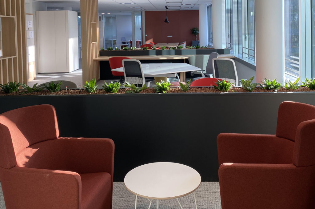 L’objectif était d’intégrer des végétaux naturels dans les espaces de travail, notamment en l’associant au mobilier existant.