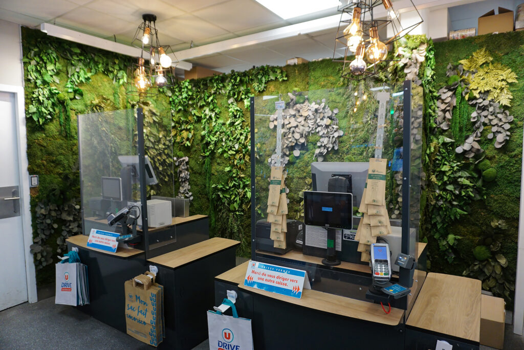 Nous avons créé et installé un décor végétal stabilisé sur-mesure au U Express Lyon St Louis.