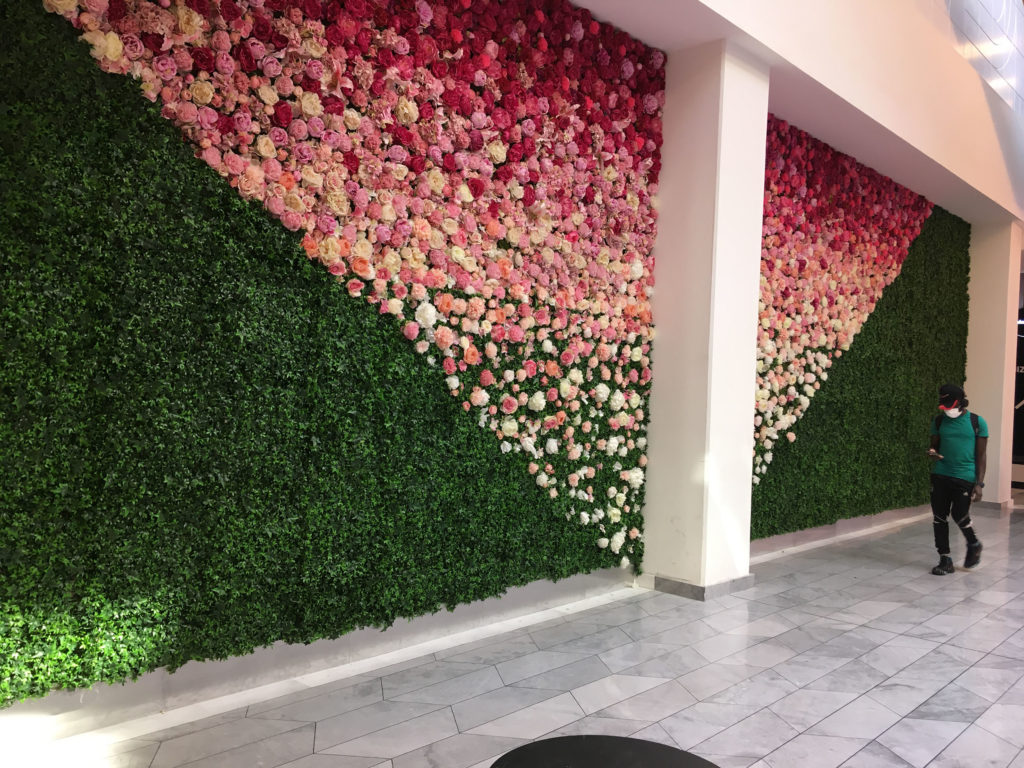 Ce nouveau parcours client représente une offre complète : le revêtement de sol textile, le mobilier, les luminaires, les bacs, les plantes naturelles et les murs de fleurs sur-mesure.